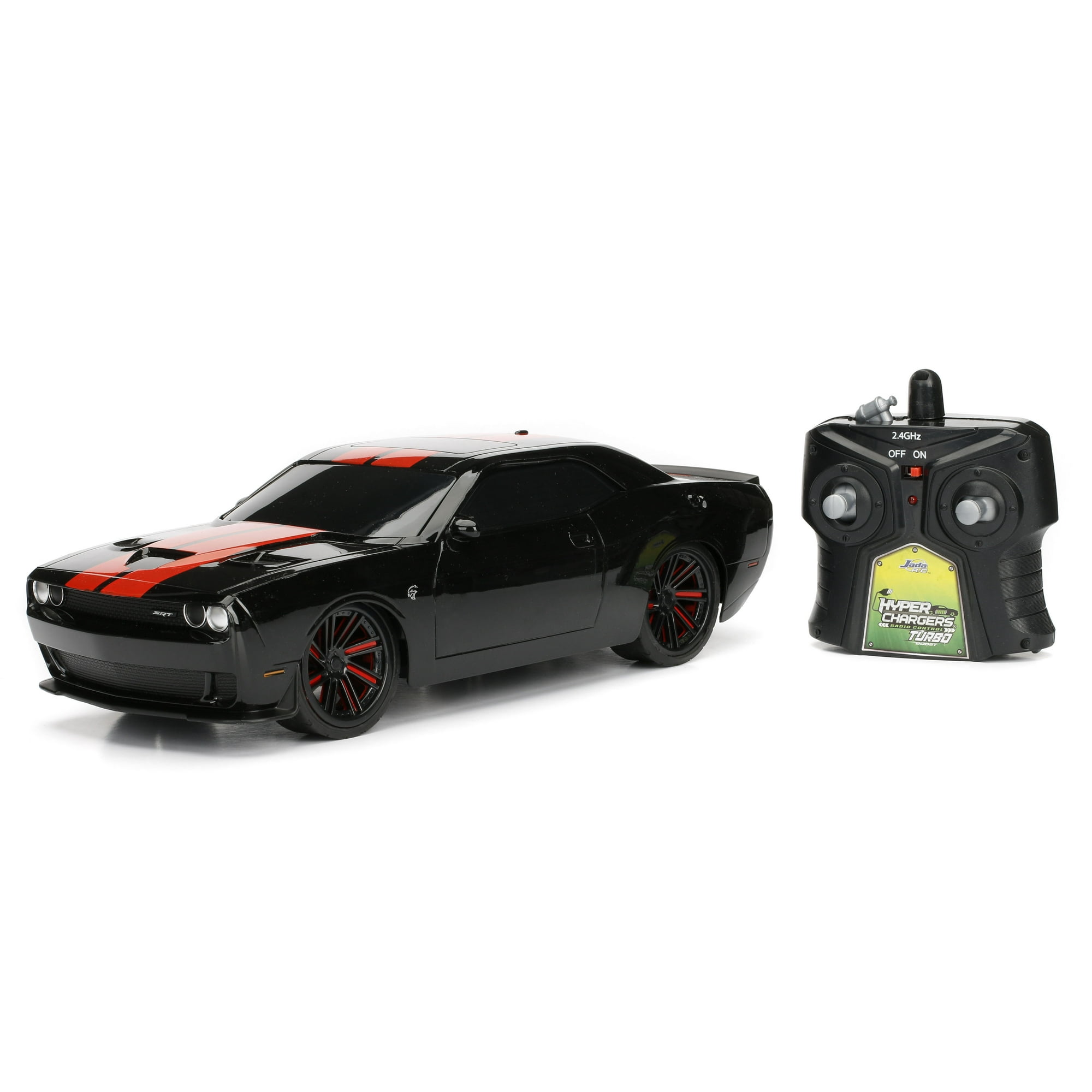 Hyper Chargers Big Time Muscle 1 16 2015 Dodge Challenger Srt Hellcat Black Red Stripes Rc Radio Control Cars Walmart Com